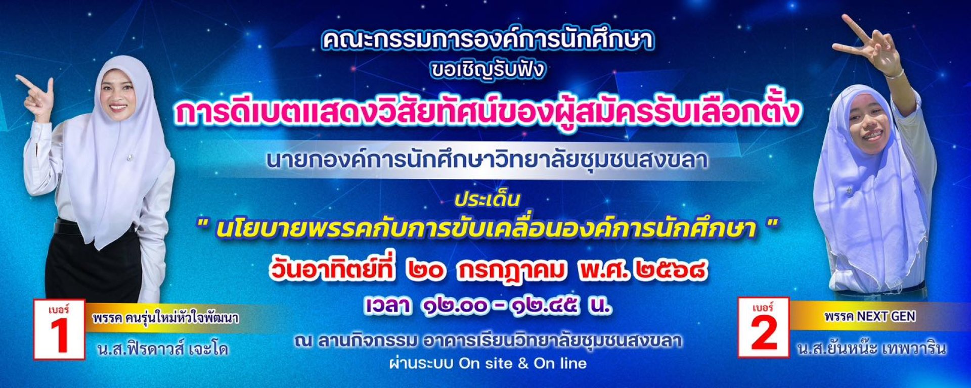 การดีเบตแสดงวิสัยทัศน์ของผู้สมัครรับเลือกตั้ง นายกองค์การนักศึกษาวอทยาลัยชุมชนสงขลา