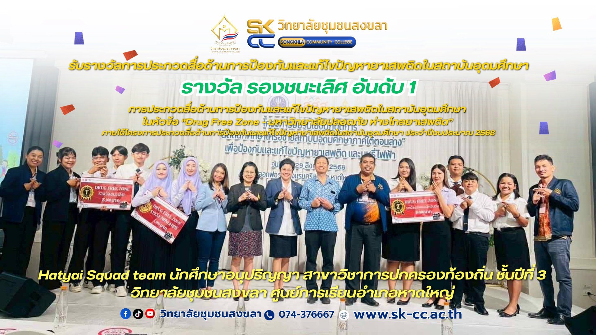 การประกวดสื่อด้านการป้องกันและแก้ไขปัญหายาเสพติดในสถาบันอุดมศึกษา นักศึกษาอนุปริญญา สาขาวิชาการปกครองท้องถิ่น วิทยาลัยชุมขนสงขลา