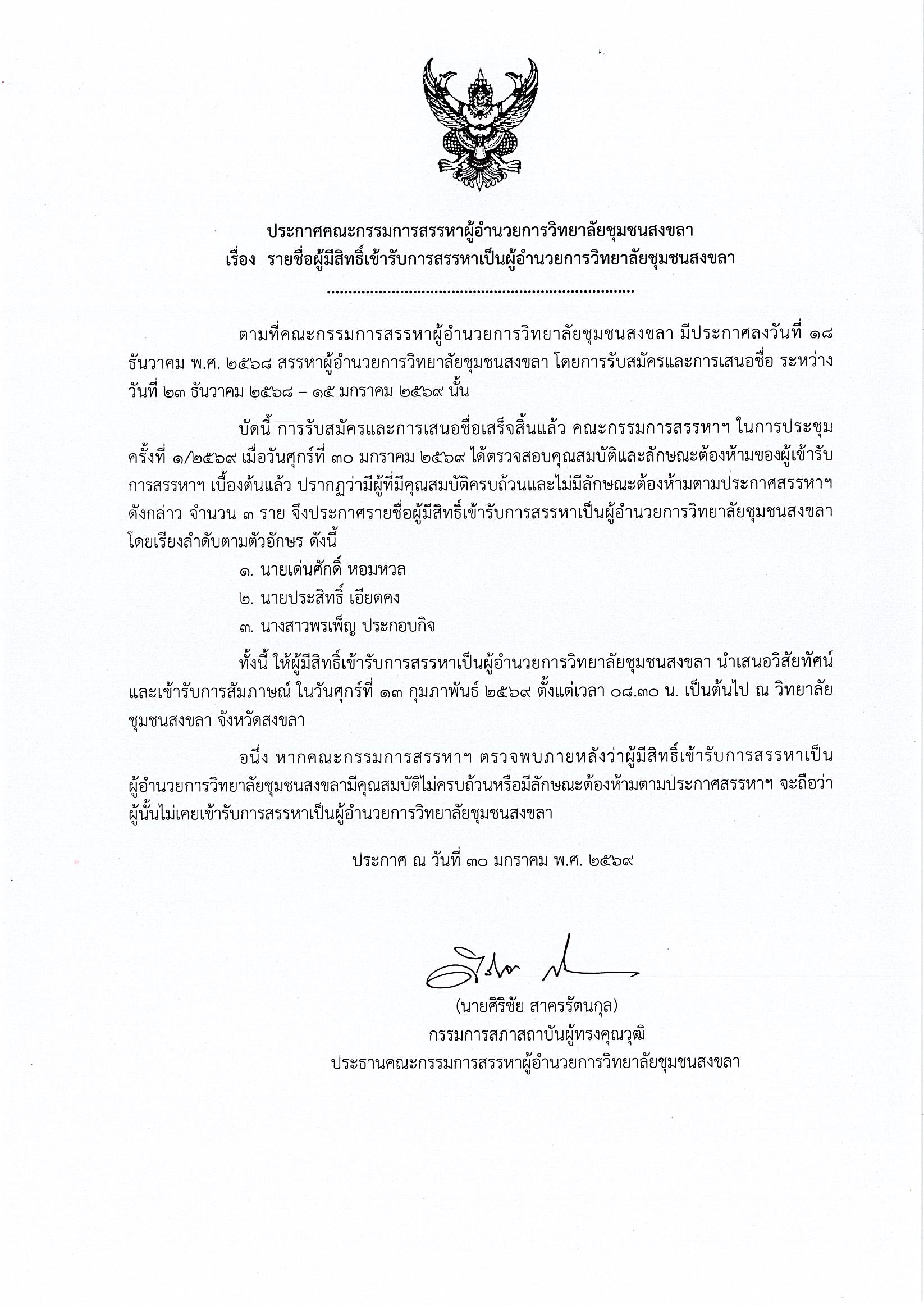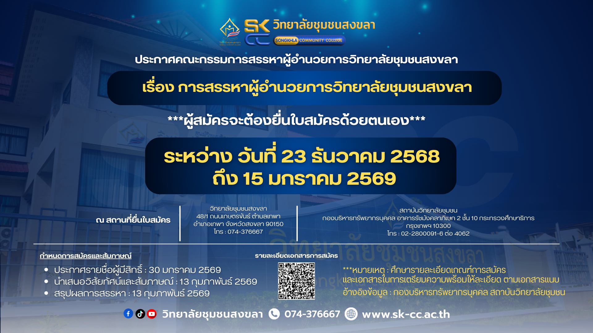 Tel: 074-376667 074-376633 Email: songkhla-iccs@sk-cc.ac.th