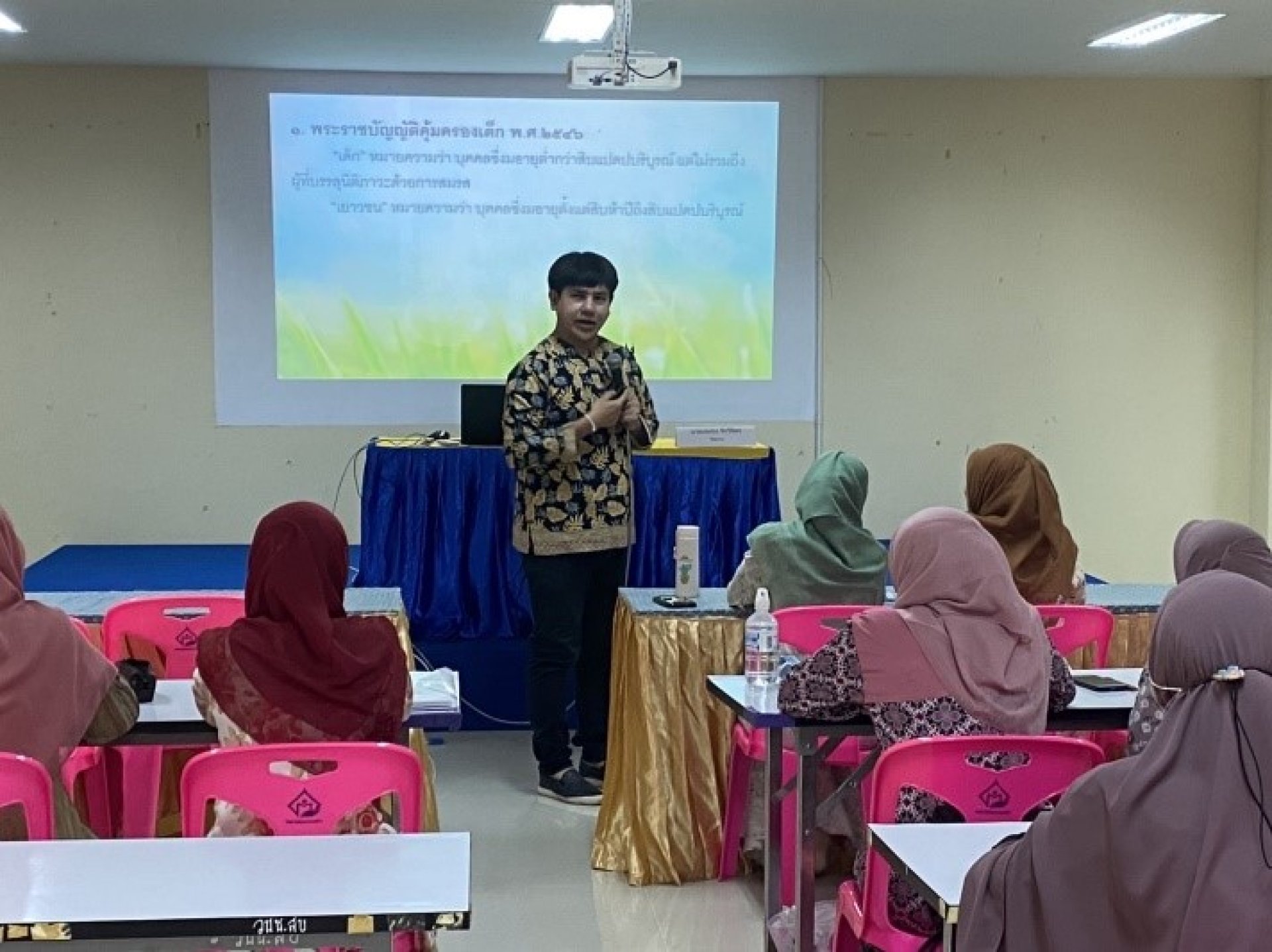 วันเสาร์ ที่ 6 มกราคม 2567 ดร.เด่นศักดิ์ หอมหวล หัวหน้างานบริหารหลักสูตรประกาศนียบัตรสัมฤทธิบัตร และบริการวิชาการ วิทยาลัยชุมชนสงขลา จัดกิจกรรมการประชุมเชิงปฏิบัติการ ทดลองใช้หลักสูตรสัมฤทธิบัตรวิทยาลัยชุมชน (ผู้ดูแลเด็กปฐมวัยในสังคมพหุวัฒนธรรม) โมดูลที่ 5 เรื่อง สิทธิเด็กและกฎหมายที่เกี่ยวข้องสำหรับเด็ก โดยมีนายเจนรบ รักวิจิตร นักวิชาการอบรมและฝึกวิชาชีพชำนาญการพิเศษ สถานพินิจและคุ้มครองเด็กและเยาวชนจังหวัดสงขลา และว่าที่ร้อยตรี ณฐนน ขวัญนิมิตร เจ้าพนักงานพินิจและครูสามัญ สถานพินิจและคุ้มครองเด็กและเยาวชนจังหวัดสตูล เป็นวิทยากร เพื่อให้ผู้ดูแลเด็กปฐมวัยสังกัดสำนักงานการศึกษาเอกชนอำเภอเทพา (สช.) มีความรู้ความเข้าใจเกี่ยวกับเนื้อหา สาระ ประกอบด้วย อนุสัญญาว่าด้วยสิทธิเด็ก พระราชบัญญัติคุ้มครองเด็ก พุทธศักราช 2546 พระราชบัญญัติการพัฒนาเด็กปฐมวัย พุทธศักราช 2562 กฎหมายที่เกี่ยวข้องกับเด็กปฐมวัย บทบาทของผู้ดูแลเด็กกับการปฏิบัติต่อเด็กปฐมวัย และเด็กช่วงวัยอื่นๆ ทั้งภาคทฤษฎีและภาคปฏิบัติ ภายหลังเสร็จสิ้นการอบรมมีการทดสอบวัดความรู้ความเข้าใจหลังเรียนและประเมินความพึงพอใจที่มีต่อการจัดกิจกรรมในโมดูลที่ 5 เพื่อนำผลการประเมินไปปรับปรุงหลักสูตรให้มีความสมบูรณ์ต่อไป