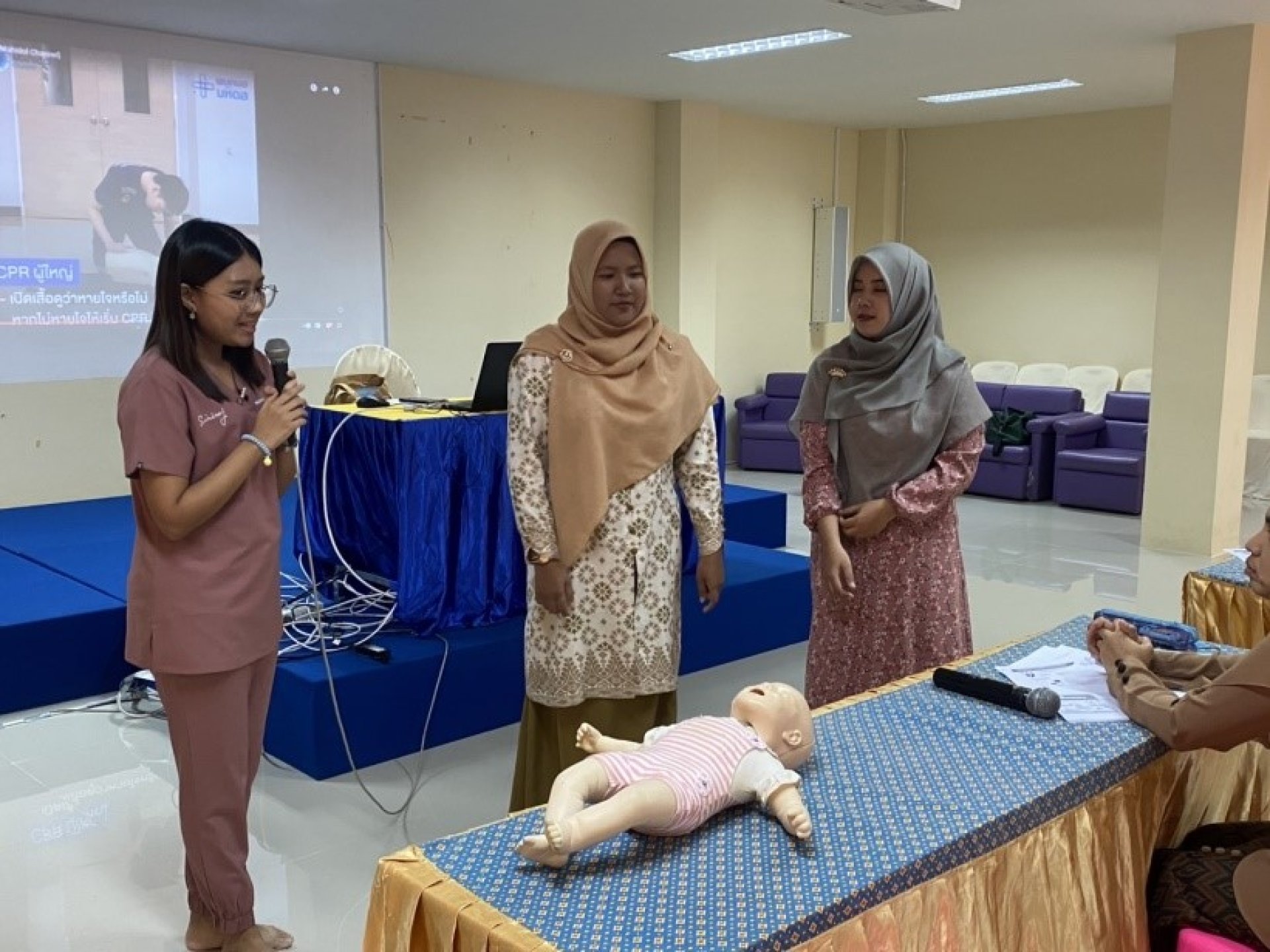 วันอาทิตย์ที่ 14 มกราคม 2567 ดร.เด่นศักดิ์ หอมหวล หัวหน้างานบริหารหลักสูตรประกาศนียบัตร สัมฤทธิบัตร และบริการวิชาการ วิทยาลัยชุมชนสงขลา ได้จัดกิจกรรมการประชุมเชิงปฏิบัติการ ทดลองใช้หลักสูตรสัมฤทธิบัตรวิทยาลัยชุมชน (ผู้ดูแลเด็กปฐมวัยในสังคมพหุวัฒนธรรม) โมดูลที่ 4 เรื่อง การดูแลสุขภาพเด็กปฐมวัยเด็ก ณ ห้องประชุมโนรา อาคารเรียนวิทยาลัยชุมชนสงขลา โดยมี แพทย์หญิงรัดเกล้า หม่อมพิบูลย์ นายแพทย์ชำนาญการด้านกุมารแพทย์โรงพยาบาลเทพา เป็นวิทยากร มีวัตถุประสงค์เพื่อให้ผู้ดูแลเด็กปฐมวัยสังกัดสำนักงานการศึกษาเอกชนอำเภอเทพา (สช.) จำนวน 10 โรงเรียน มีความรู้ความเข้าใจ เกี่ยวกับการคัดกรองสุขภาพและความปลอดภัยในเด็กปฐมวัย การประเมินการเจริญเติบโต โรคที่พบบ่อยในเด็กปฐมวัย การประเมินพัฒนาการเบื้องต้น การปฐมพยาบาลเด็กปฐมวัย การประเมินปัญหาโภชนาการในเด็กปฐมวัย ทั้งภาคทฤษฎีและภาคปฏิบัติ ประกอบด้วย ทดสอบวัดความรู้ความเข้าใจก่อนฝึกอบรม การบรรยาย การแลกเปลี่ยนประสบการณ์เกี่ยวกับโรคที่มักพบในเด็กปฐมวัยและพัฒนาการของเด็กปฐมวัย การฝึกวิเคราะห์และนำเสนอจากกรณีศึกษา การสาธิตและปฏิบัติการปฐมพยาบาลเด็กปฐมวัยจากหุ่นจำลอง การสะท้อนผลการเรียนรู้ ภายหลังเสร็จสิ้นการจัดกิจกรรมมีการทดสอบวัดความรู้ความเข้าใจหลังฝึกอบรมและประเมินความพึงพอใจที่มีต่อการจัดกิจกรรมโมดูลที่ 4 เพื่อนำผลการประเมินไปปรับปรุงหลักสูตรให้มีความสมบูรณ์ต่อไป