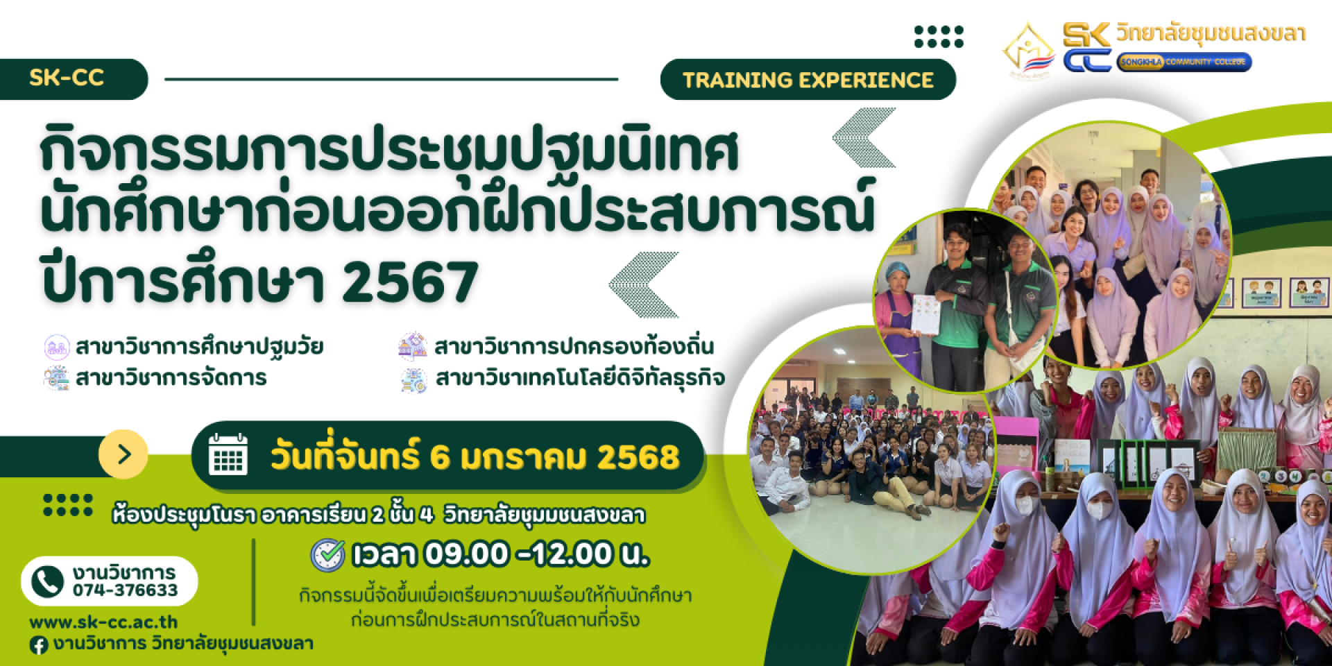 ณ ห้องประชุมโนรา อาคารเรียน 2 ชั้น 4 วิทยาลัยชุมชนสงขลา
