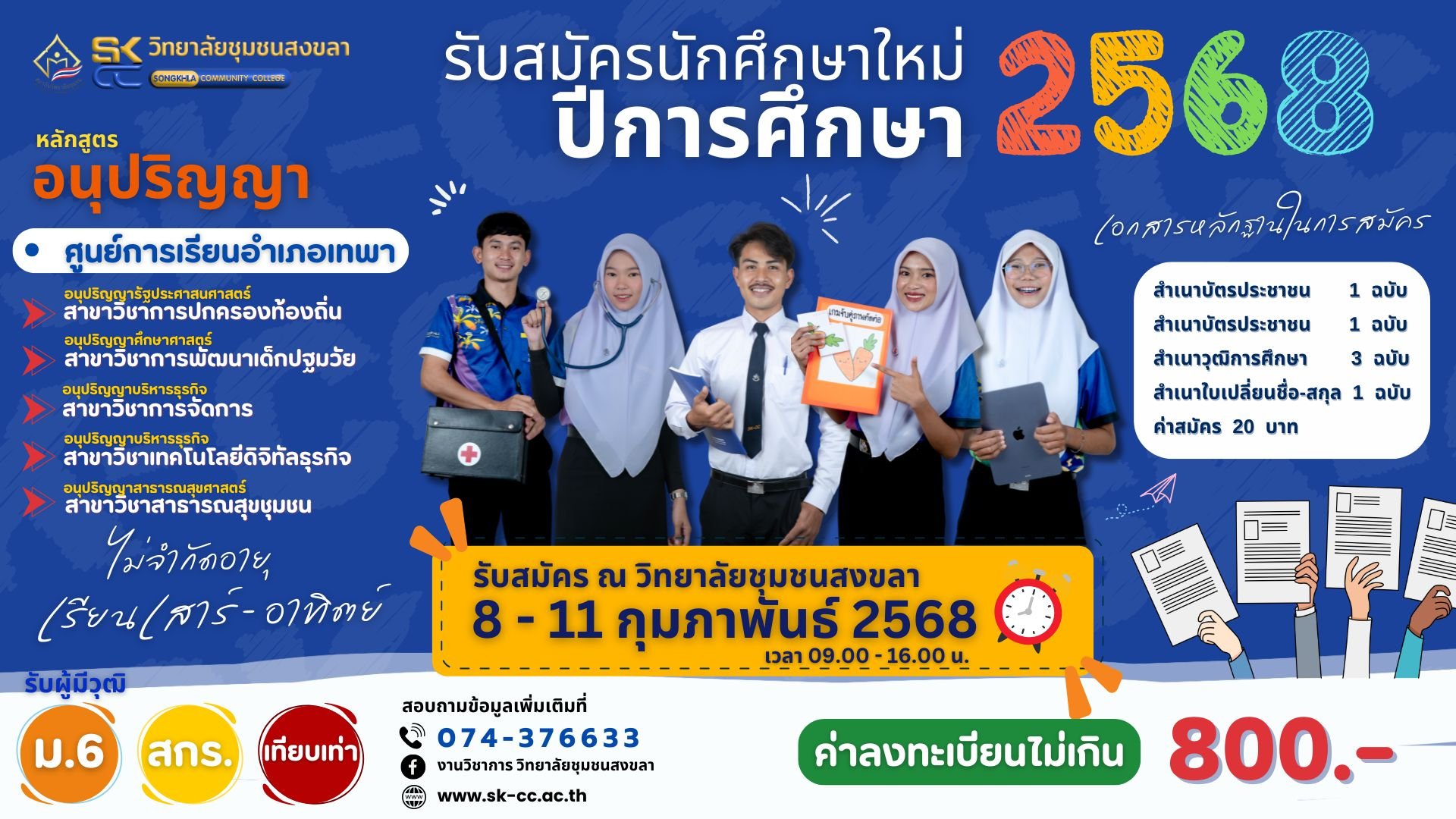 เปิดรับสมัครนักศึกษาใหม่ ระดับอนุปริญญา ปีการศึกษา 2568
