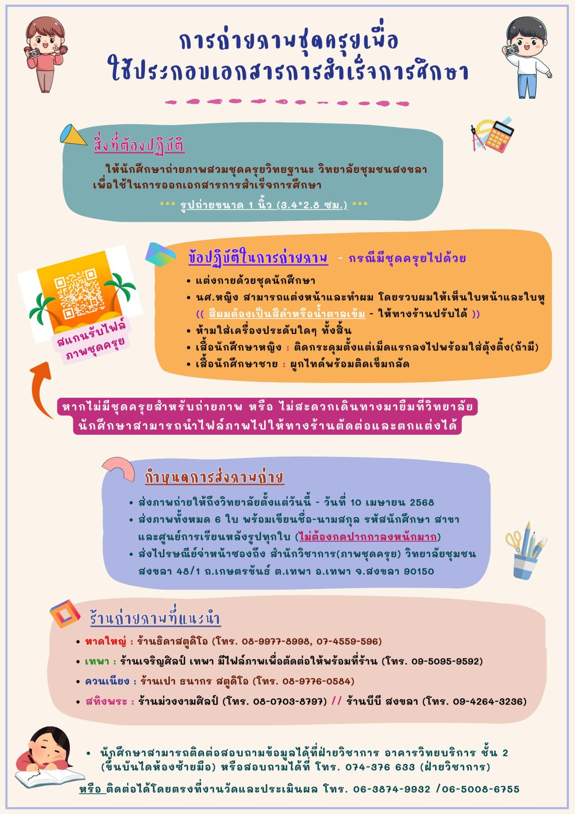 (ขึ้นบันไดห้องซ้ายมือ) หรือสอบถามได้ที่ โทร. 074-376633 (งานวิชาการ)