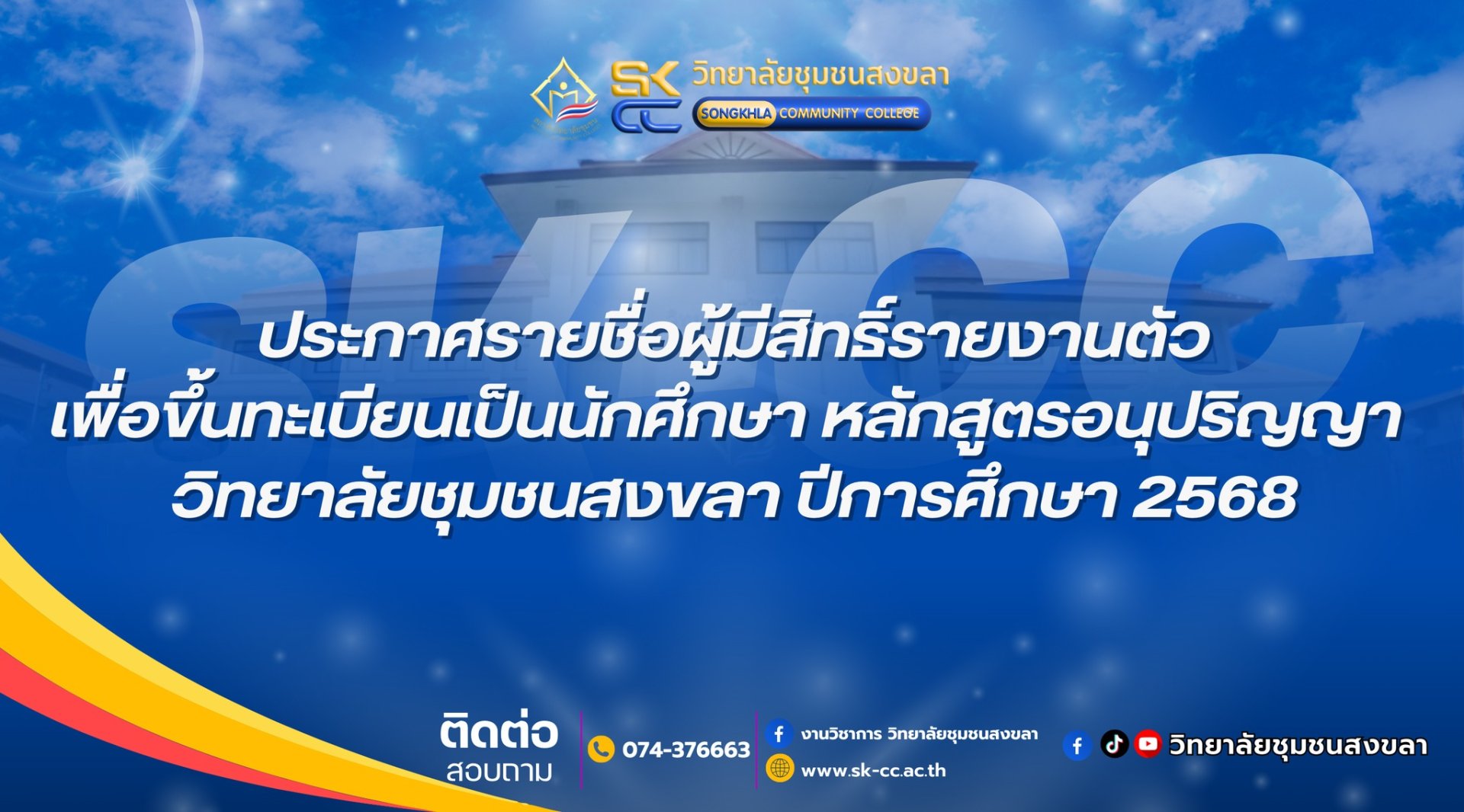 หลักสูตรอนุปริญญา วิทยาลัยชุมชนสงขลา ปีการศึกษา 2568