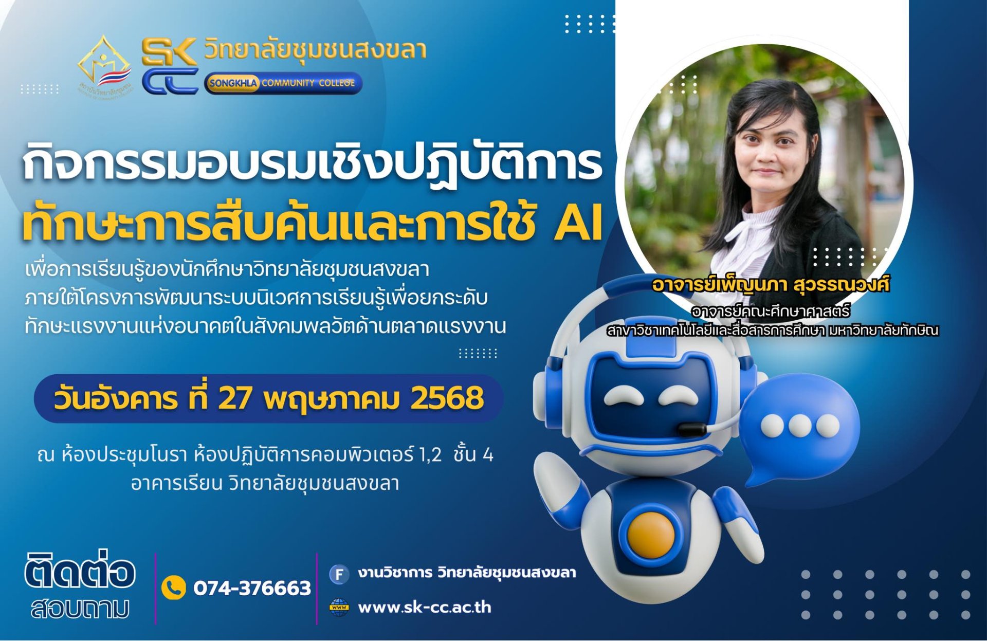 เพื่อการเรียนรู้ของนักศึกษา วิทยาลัยชุมชนสงขลา ภายใต้โครงการพัฒนาระบบนิเวศการเรียนรู้เพื่อยกระดับทักษะแรงงานแห่งอนาคตในสังคมพลวัตด้านตลาดแรงงาน
