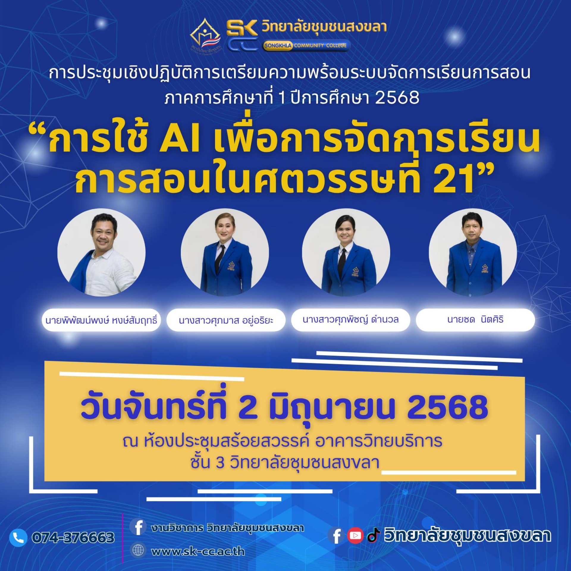 วันจันทร์ที่ 2 มิถุนายน 2568 ณ ห้องประชุมสร้อยสวรรค์ อาคารวิทยบริการ ชั้น 3 วิทยาลัยชุมชนสงขลา