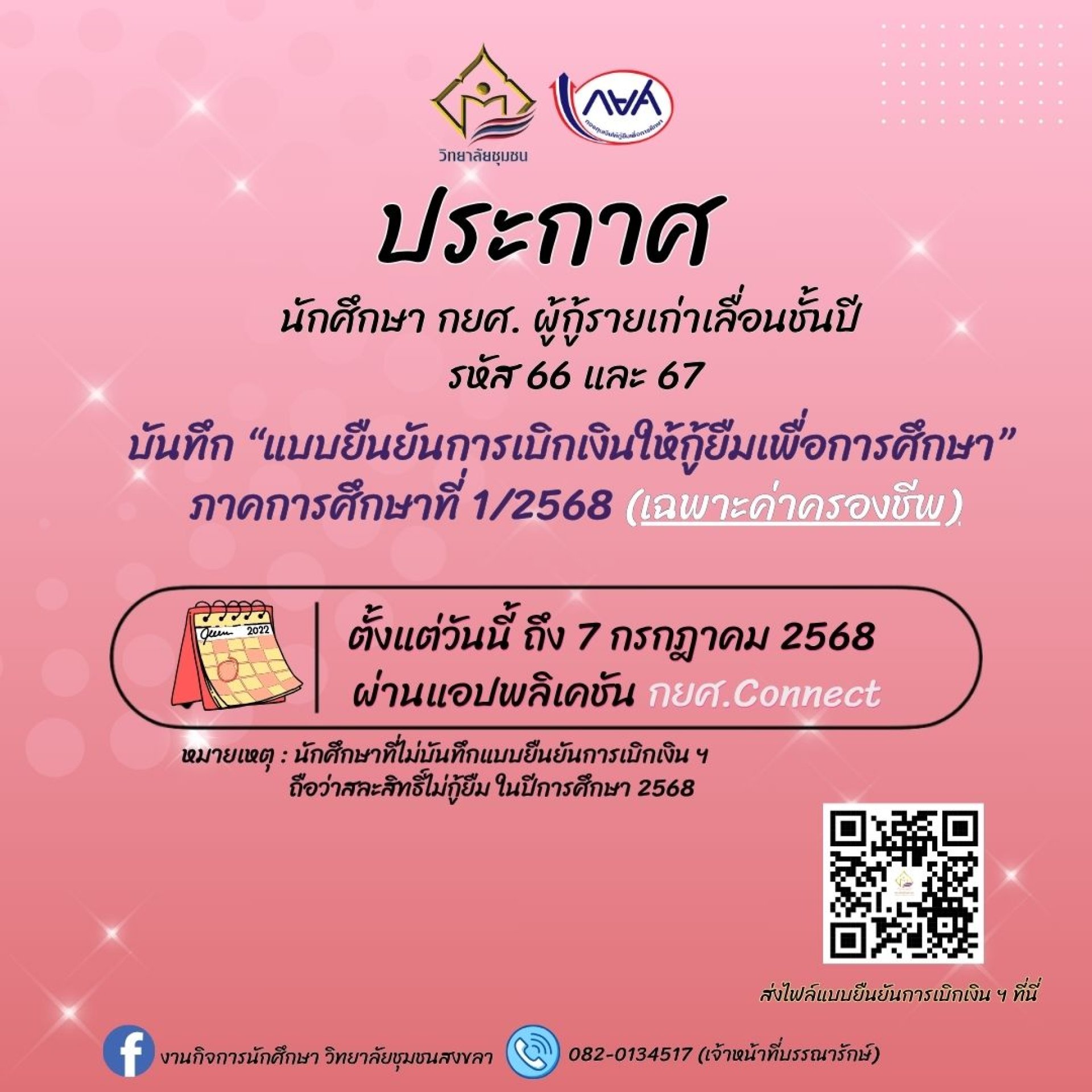 ประชาสัมพันธ์ นักศึกษา กยศ. ผู้กู้รายเก่าเลื่อนชั้นปี รหัส 66 และ 67