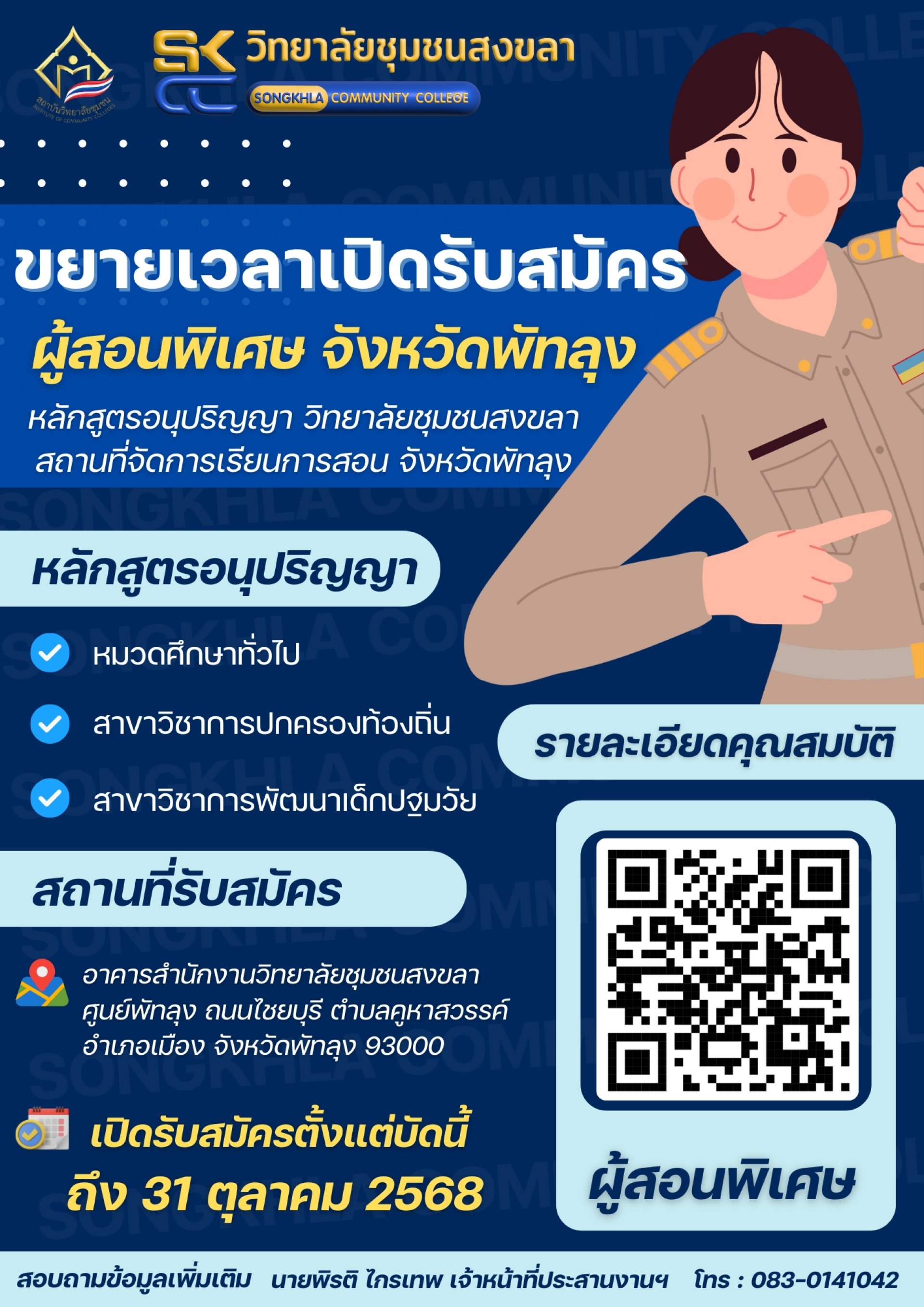 ประกาศรับสมัครผู้สอนพิเศษ วิทยาลัยชุมชนสงขลา
