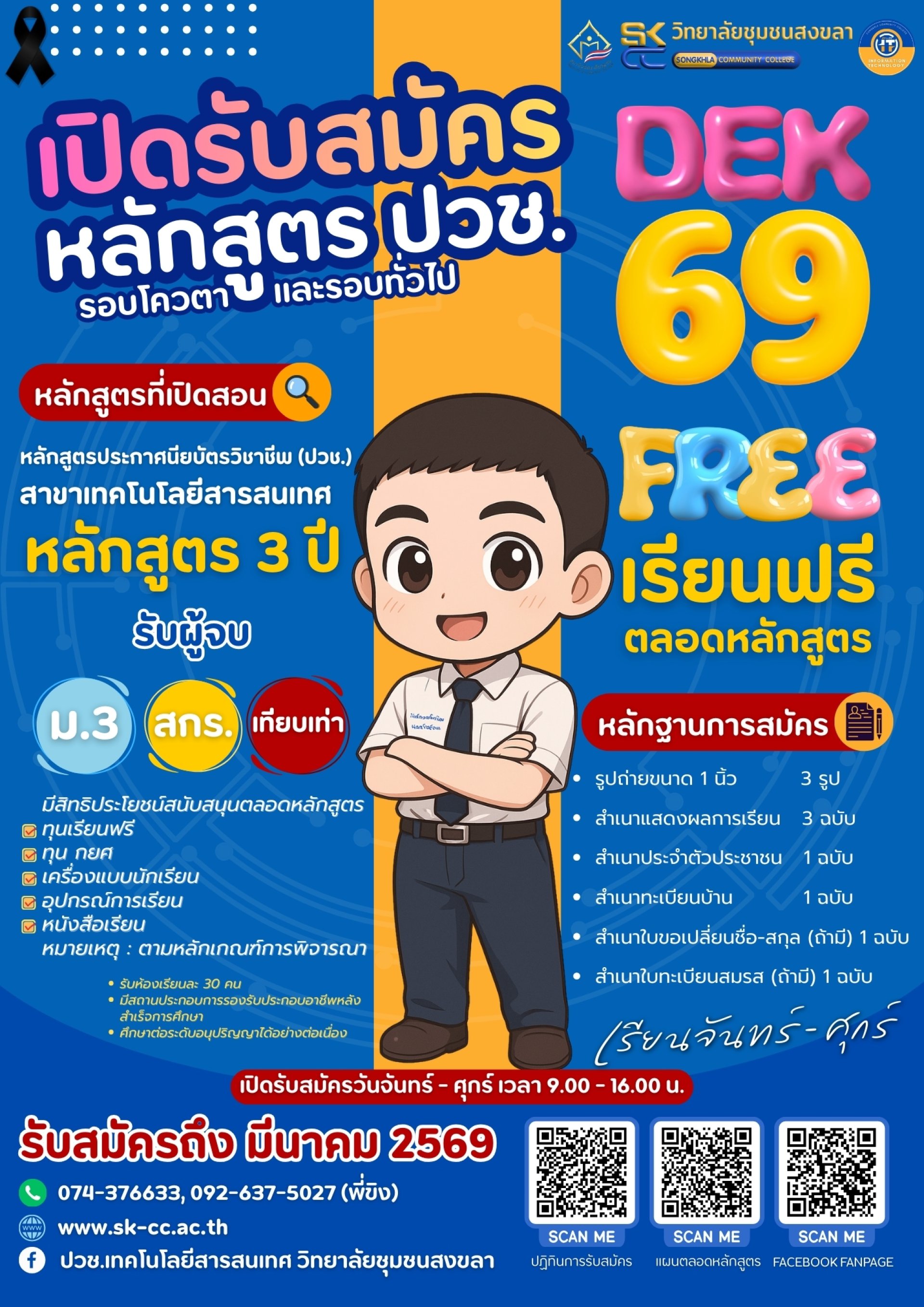วิทยาลัยชุมชนสงขลา เปิดรับสมัครนักเรียนระดับ ปวช. สาขาเทคโนโลยีสารสนเทศ ปีการศึกษา 2569