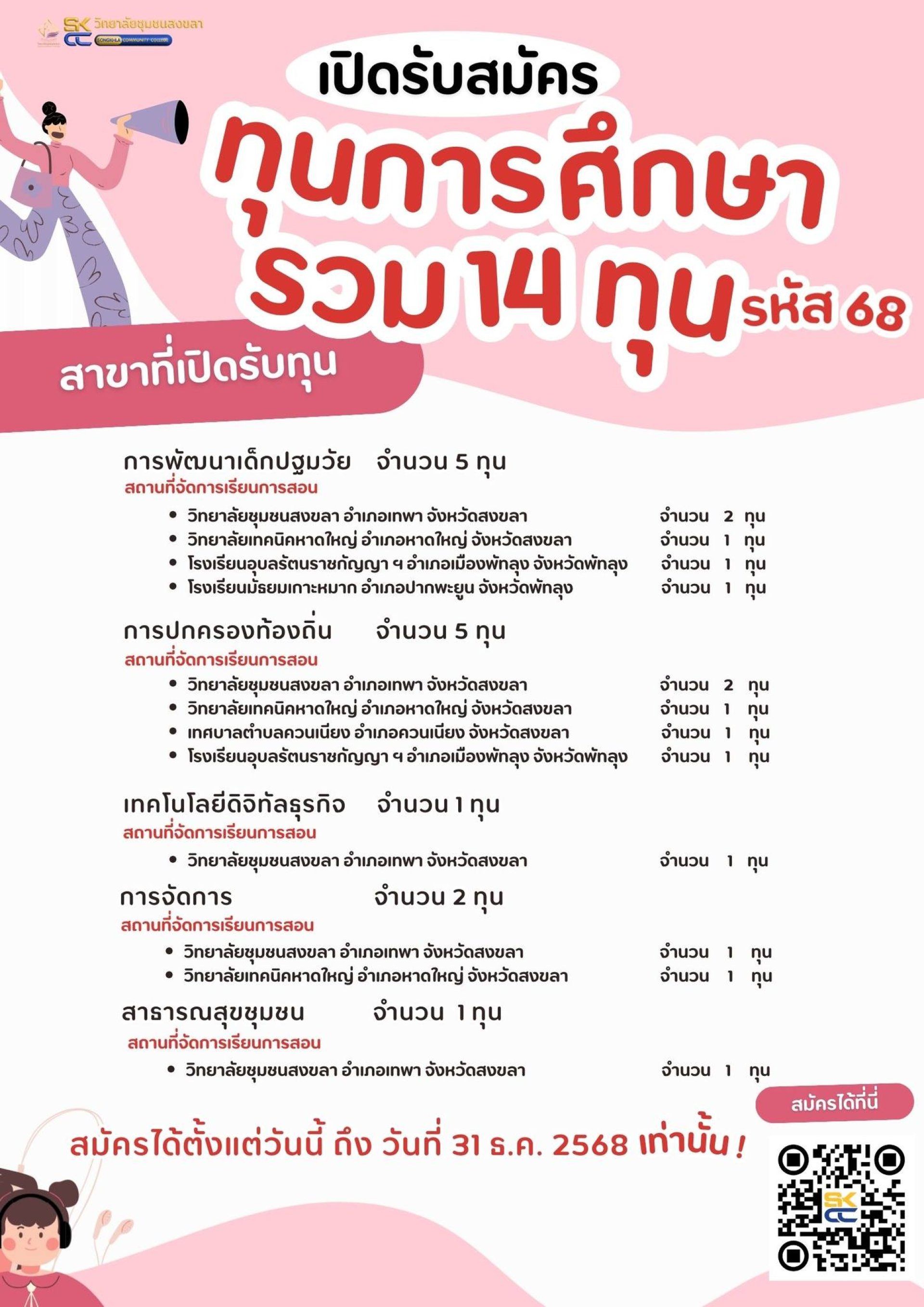 ทุนนี้ครอบคลุมค่าเล่าเรียน พร้อมโอกาสในการเรียนรู้และพัฒนาในสาขาที่คุณสนใจ!