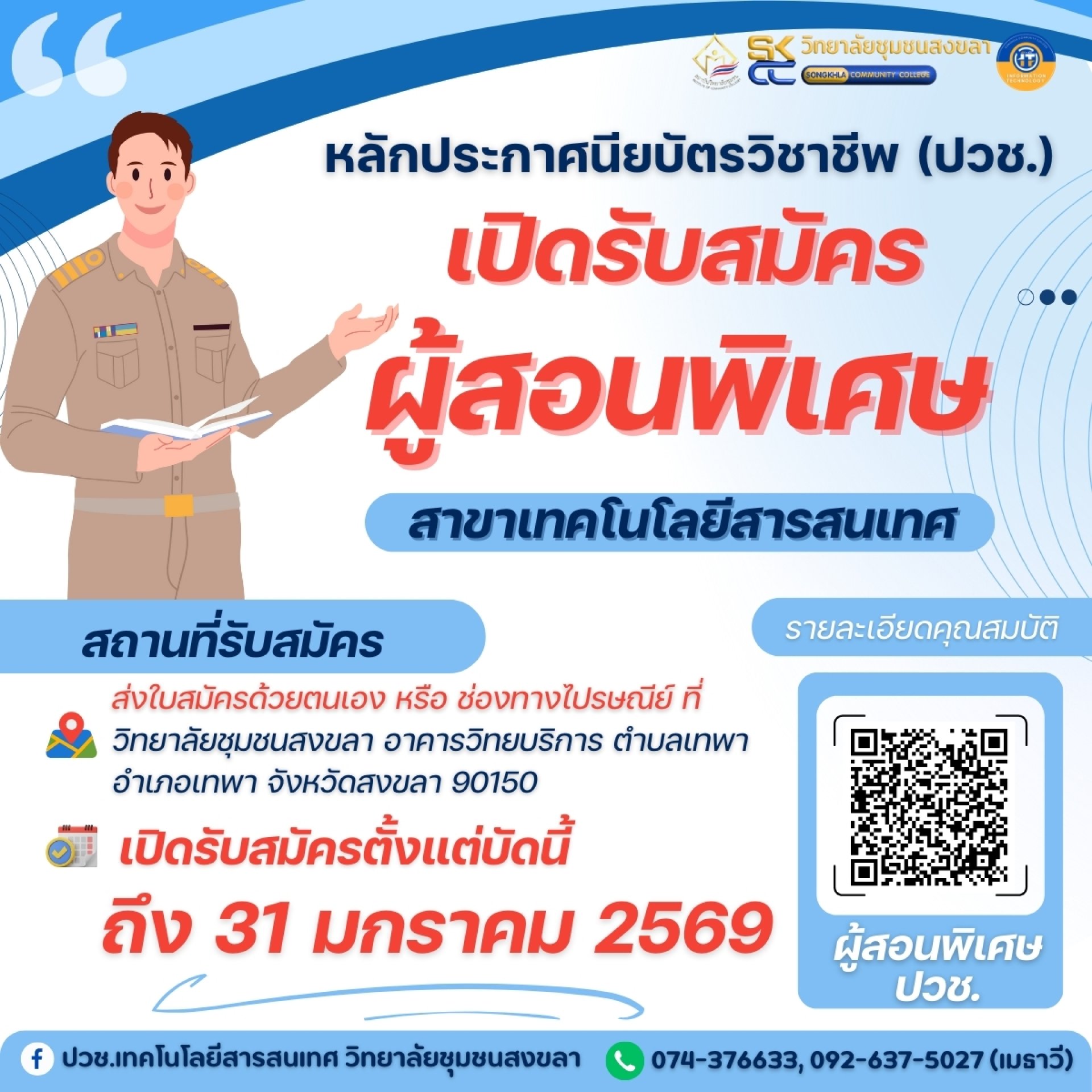 ณ วิทยาลัยชุมชนสงขลา หรือจัดส่งเอกสารมาทางช่องทางที่ระบุไว้