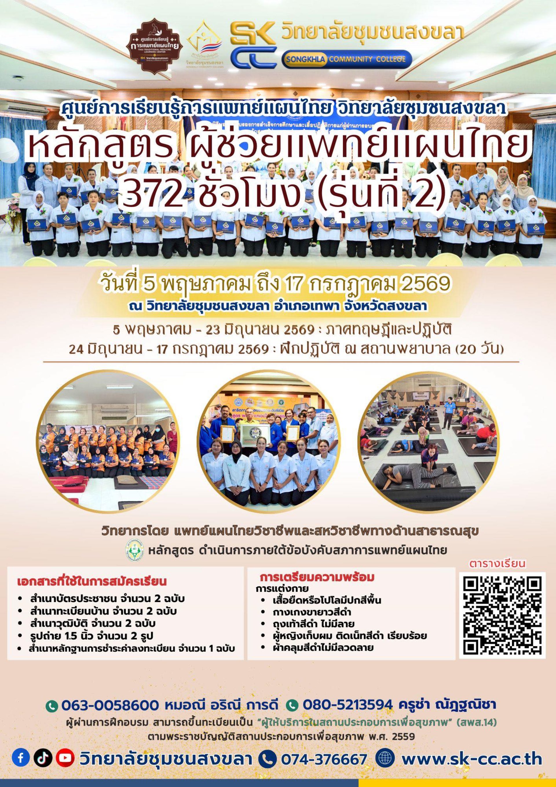 หลักสูตร ผู้ช่วยแพทย์แผนไทย 372 ชั่วโมง" รุ่นที่ 2