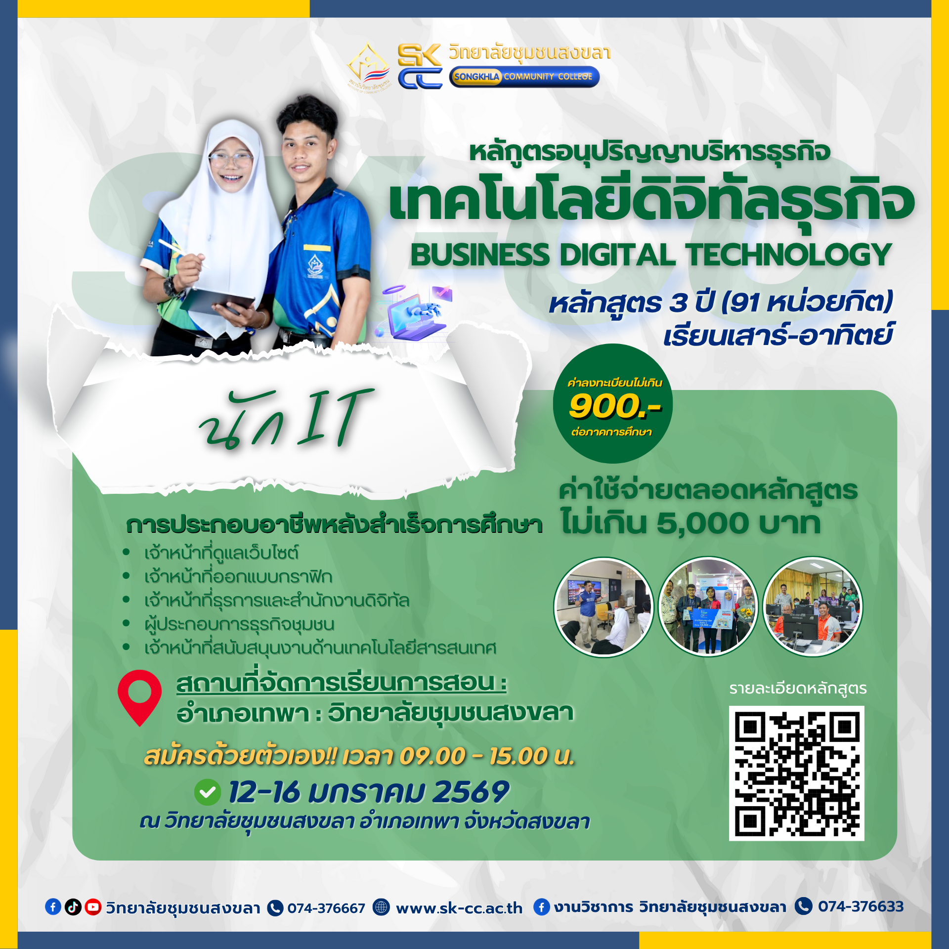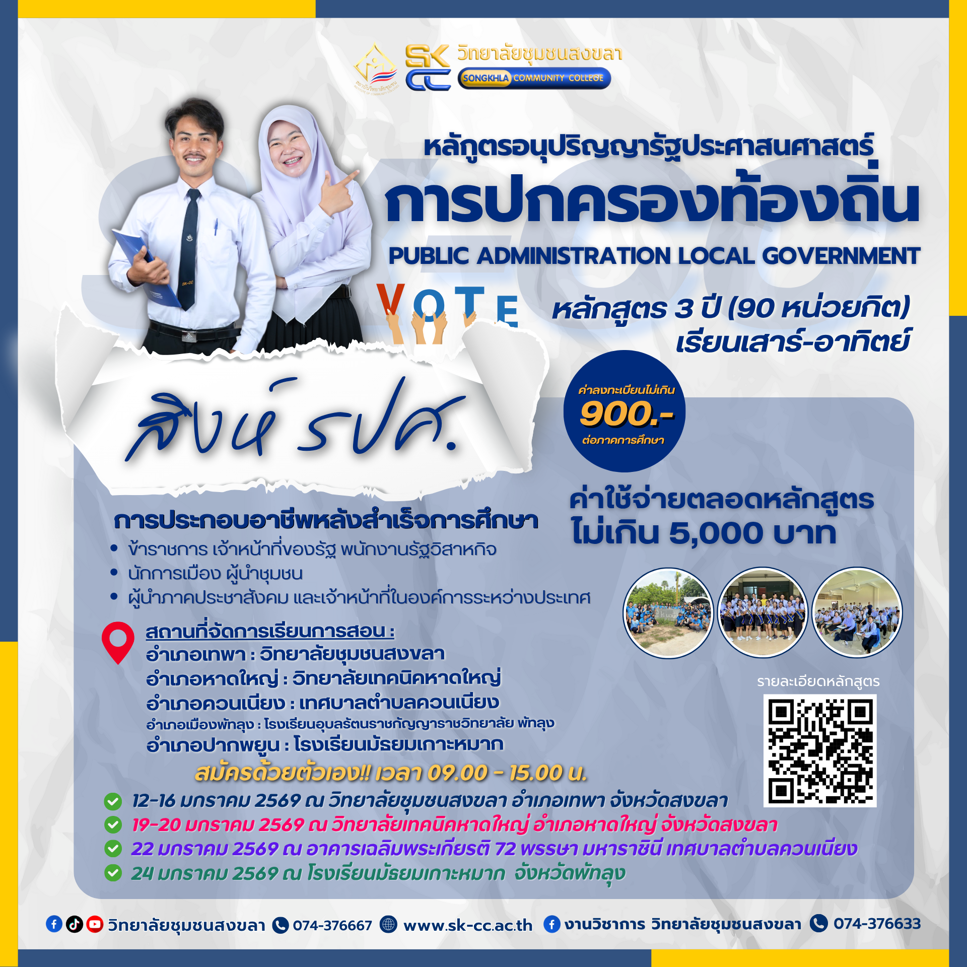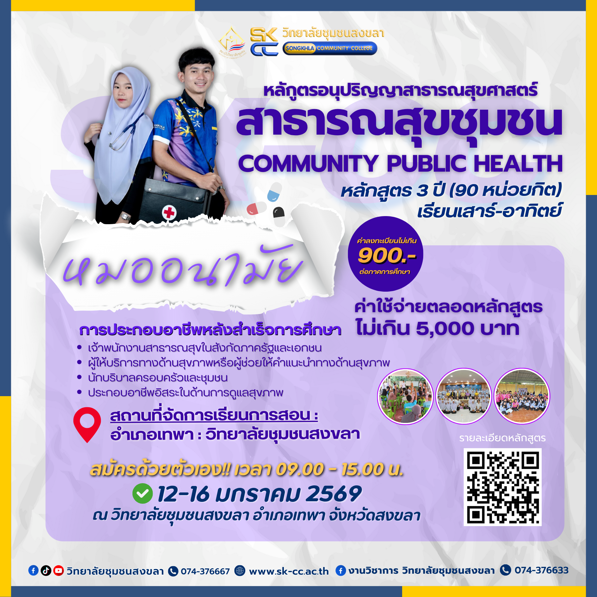 - 12-16 มกราคม 2569 ณ วิทยาลัยชุมชนสงขลา (อำเภอเทพา)