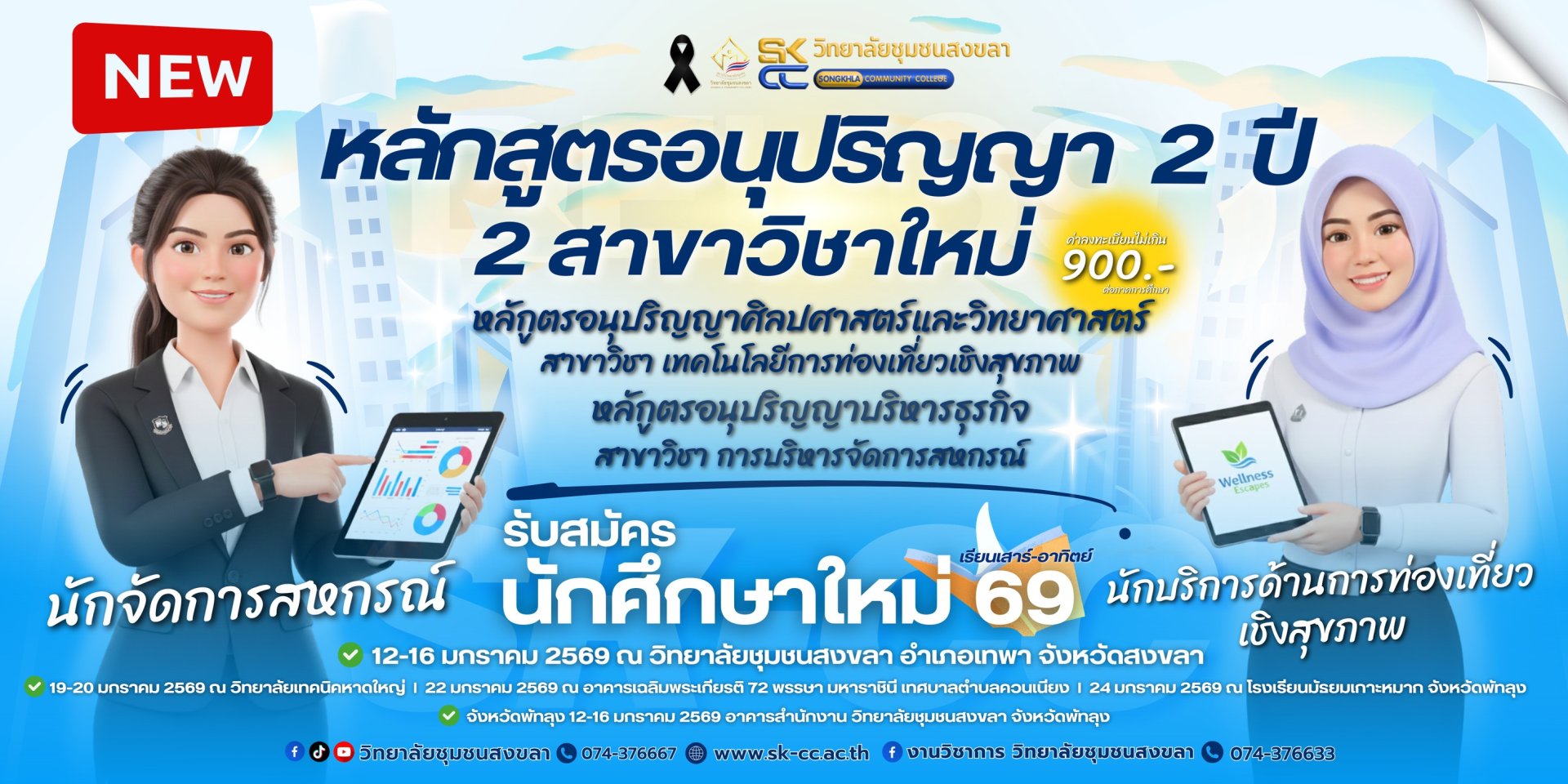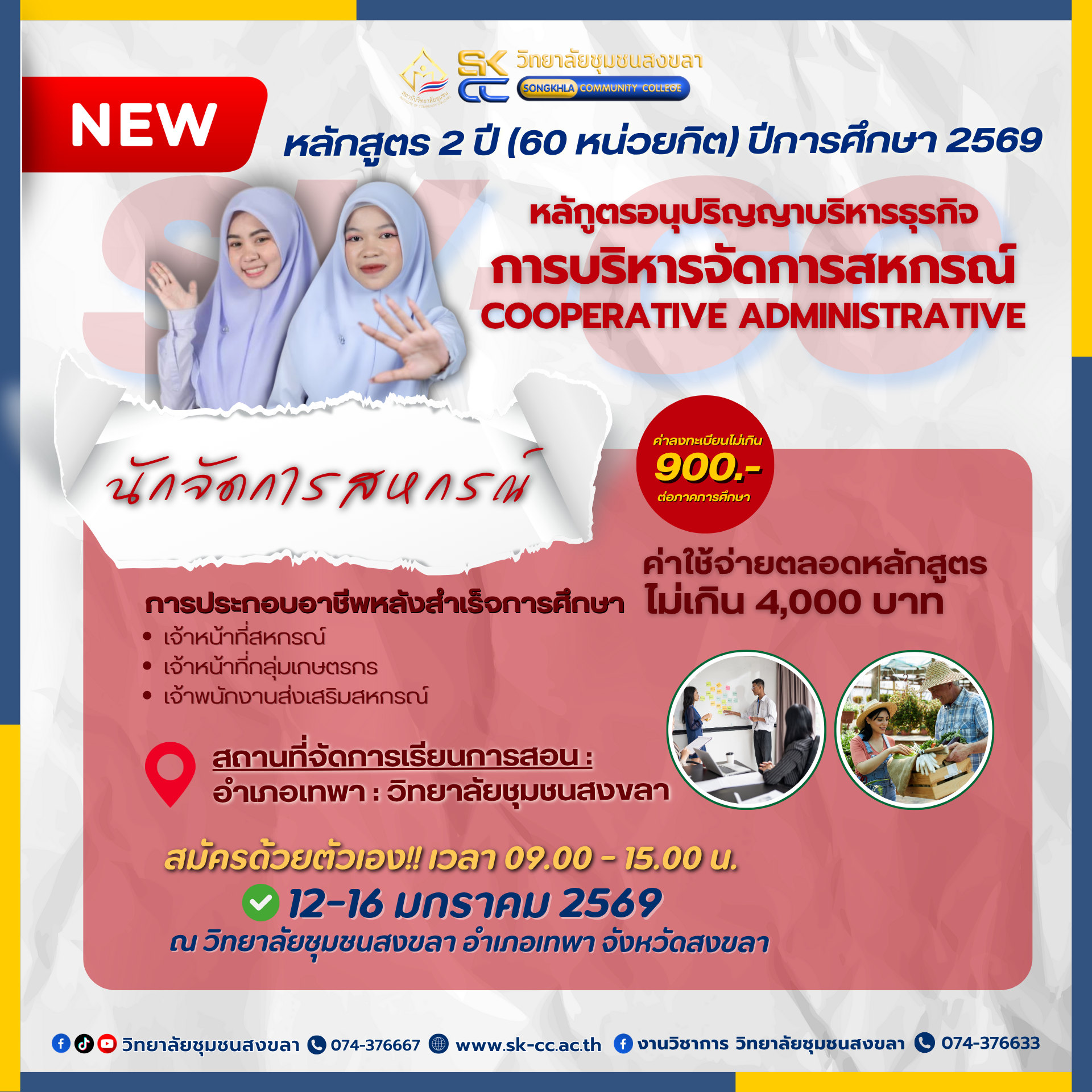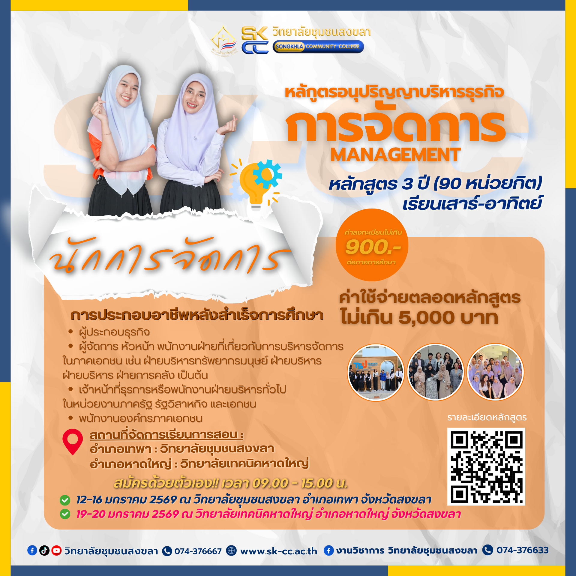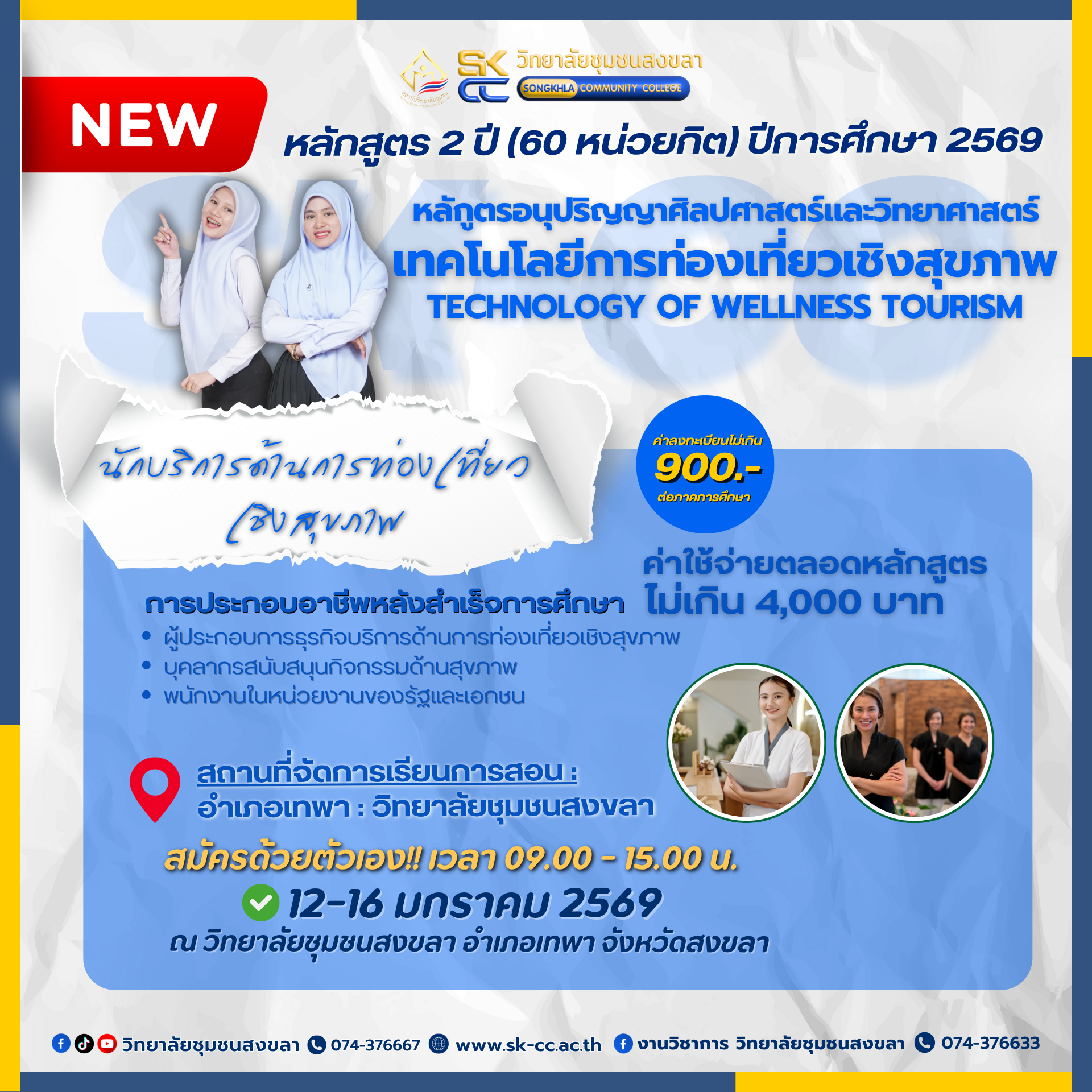 - 12-16 มกราคม 2569 ณ วิทยาลัยชุมชนสงขลา (อำเภอเทพา)